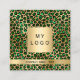 A emerald green and faux gold leopard pattern as background on the front. Personalise and add your business logo and text on front.