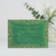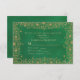 Coordinate your event with this matching emerald and gold RSVP card. Designed to pair beautifully with your Quinceañera invitation, it features a deep green background, elegant gold text, and delicate sparkle details. Guests can easily respond with this stylish card that completes your formal celebration suite.