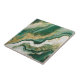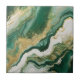 This exquisite ceramic tile features a mesmerizing emerald green and gold abstract design that mimics the organic flow of alcohol ink and the luxury of polished gemstones. Deep teal and forest green hues swirl effortlessly with creamy whites, accented by veins of shimmering faux gold dust and metallic textures.