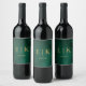 Emerald Green & Gold Monogram Wedding Wine Label | Personalised Elegant Luxe Initial Bottle Sticker