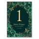 Emerald green gold Quinceanera celebration table number cards. Features, script font, gold butterflies, watercolor roses and tiara. Perfect for an elegant princess style glam celebration. Personalize with your own details. Printed Zazzle invitations or instant download digital printable template.