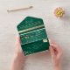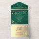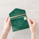 Create a warm and romantic wedding stationery experience with this emerald green and gold all-in-one wedding invitation, designed with a photo panel, integrated RSVP section, and wedding website details.