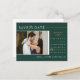 This save the date engagement announcement invitation postcard features elegant calligraphy and simple sans serif typography font with a photo and QR code on an emerald green background with faux gold lines, gold heart ring, and black/white text for a clean minimalist and modern look, which is a beautiful way to tell your guests to inform about your upcoming wedding. Announce to your family and friends you are getting married with this invitation and add a personal touch with beautiful pictures of you and your soon-to-be better half. The simplicity of this design adds a touch of elegance to your wedding save the date invitation cards. It works well with many wedding themes and definitely a great addition to your wedding. Just customise the names and wording in a few easy steps and personalise the invitation postcard with your photo of the happy couple and replace the QR Code with yours.