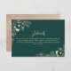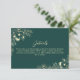 Stylish emerald green and gold wedding details card with elegant floral accents. This insert card is perfect for sharing extra wedding information such as your wedding website, RSVP site, reception details, directions, accommodations, or other important notes for guests. Coordinates beautifully with the matching emerald green and gold wedding invitation suite.