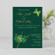 Emerald green Real foil gold flower and butterfly Wedding Invitation
