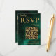 Emerald Green & Gold Wedding QR Code RSVP Enclosure Card