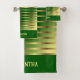 Emerald Green Golden Stripes Name Geometric Bath Towel Set