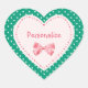 Cute emerald green polka dot pattern stickers with a heart shaped patch stitched in pink and embellished with a pretty in pink bow. Personalise by adding your name to this trendy colour trend pattern Perfect for the stylish teen girl! Flat printed image, not actual bow.
