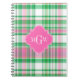Emerald Green Hot Pink Wht Preppy Madras Monogram Notebook