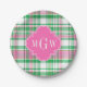 Emerald Green Hot Pink Wht Preppy Madras Monogram Paper Plate