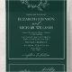 We're loving this trendy, modern emerald green All-in-one Simple, elegant, and oh-so-pretty, it features a hand drawn leafy wreath encircling a modern wedding monogram. It is personalised in elegant typography, and accented with hand-lettered calligraphy. Finally, it is trimmed in a delicate frame. To remove meal choices in the RSVP section, we have created a how-to video for you here: https://youtu.be/ZGpeldQgxoE. Part of a matching wedding set. Veiw suite here: