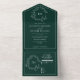 Emerald Green Leafy Crest Monogram Wedding All In One Invitation