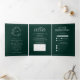 Emerald Green Leafy Crest Monogram Wedding Tri-Fold Invitation