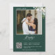 This engagement party invitation features an elegant modern minimalist style with watercolor greenery foliage leaves arrangements and beautiful calligraphy and clean and serif typography fonts on an emerald green background. The simplicity of this design adds a touch of elegance to your wedding. It works well with many wedding themes and definitely a great addition to your wedding. Just customise the names and wording in a few easy steps and personalise the invitation card with your photo of the happy couple and replace the QR Code with yours on the back of the invitation to give your invitation a nice personal touch.
