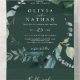 Emerald Green Leaves Frame Wedding All In One Invitation