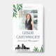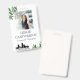 Greenery ID badge in a crisp and fresh design with leaves in different hues of green and blue for a therapist, psychologist, counsellor, massage therapist, or a similar nurturing and healing profession personalised with photo, name, title, and logo. Add your own logo to this calm photo ID badge with your name in navy blue. Green leaves ID badge for a healing profession with photo, name, and logo.