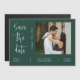 This beautiful Save the Date magnetic card features an elegant modern minimalist style with a clean and simple sans serif typography fonts with a photo on an emerald green background for a clean minimalist and modern look, which is a beautiful way to inform about your upcoming wedding. Announce to your family and friends you are getting married with this save the date magnetic card and add a personal touch with beautiful pictures of you and your soon-to-be better half. The simplicity of this design adds a touch of elegance to your wedding. It works well with many wedding themes and definitely a great addition to your wedding. Just customise the names and wording in a few easy steps and personalise the magnetic card with your photo of the happy couple.