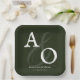 Emerald Green Minimalist Monogram Wedding Paper Plate