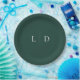 Emerald Green Minimalist Monogram Wedding Paper Plate
