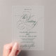 Now available in clear or frosted acrylic, this design takes on a striking new dimension, offering a modern, elegant finish that enhances its timeless appeal. The versatile acrylic adds a luminous touch, perfect for making your invitations as unforgettable as the moments they celebrate. Choose from either 15 or 40 mil thickness.