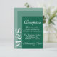 Simple modern chic script wedding enclosure card for brides who are adorning their ceremonies in a modern style and emerald green colour. The chic wedding suite has modern white font with initials monogram on the side.