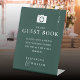 Emerald Green Monogram Photo Guest Book Wedding Pedestal Sign