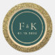 Emerald Green Monogram Wedding Classic Round Sticker