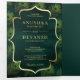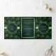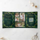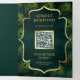Emerald Green Peacock Feathers QR Code Wedding Tri-Fold Invitation