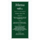 Birthday party menu card. Personalise and add a name, age, date and the menu. A emerald green background. White coloured letters.