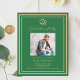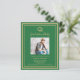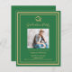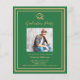 An emerald green background, decorated with a golden frame, and a faux gold graduation cap. Personalise and add a photo name and details.