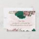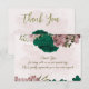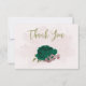 Beautiful romantic wedding thank you card featuring emerald green and pink flowers and some leaves .