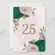 emerald green pink flowers table number card