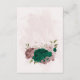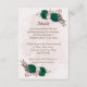 Beautiful romantic wedding reception details enclosure card featuring emerald green and pink flowers and some leaves .