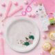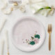 emerald green pink flowers wedding paper plate