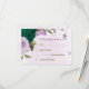 Beautiful romantic wedding response card featuring emerald green and purple flowers and some leaves .