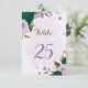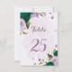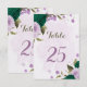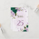 emerald green purple flowers table number card