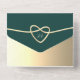 Elegant and practical, this emerald green all-in-one wedding invitation features a chic gold heart rope motif and integrated QR code for digital RSVPs. With space for three personal photos and a matching envelope design, this modern invitation simplifies your wedding planning while impressing your guests with style and ease.