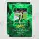 Invite your Quinceañera guests with an emerald green and gold gemstone tiara invitation. Easily upload your verde quinceanera dress photo over a beautiful green rose background. This modern gradient emerald to jade Quinceanera invitation has beautifully matching envelopes, return-address labels, and thank you cards. A popular green design with a glittery gold number 15 on the back is perfect for your Mis Quince birthday celebration.