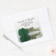 These wedding return address envelope seals feature a unique square shape designed to show off the beautiful artwork, which features a single long stemmed emerald green coloured rose lying on its side reflecting in a pool of water with ripples and waves. The lettering is done in elegant script calligraphy. Beautiful way to add class and style to your wedding mailings.