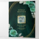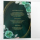 Emerald Green Roses All in One QR Code Wedding Tri-Fold Invitation