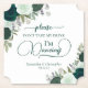 This wedding coaster is elegant, stylish, and fun! It features a beautiful boho chic floral design with hand painted watercolor roses in shades of emerald, mint, and sage green along with garden eucalyptus leaves and foliage. The text is written in elegant modern script lettering and reads "Please don't take my drink, I'm dancing" with space for the names of the couple and wedding date at the bottom. Great memento for your guests and also a practical way to let the wait staff know not to clear the drinks just yet!