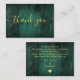 An elegant emerald green rustic barn wood boho wedding thank you reception card, personalised with a special message and the bride and groom's names in chic gold typography. Designed by Thisisnotme©