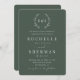 Emerald Green Rustic Leaf Simple Monogram Wedding Invitation