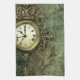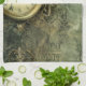 Elevate your kitchen decor with this kitchen towel featuring a vintage steampunk wall clock against a rustic emerald green backdrop. It's a fusion of classic design and modern functionality. Order yours now!