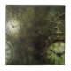 Elevate your decor with this ceramic tile showcasing an old-style steampunk wall clock on a rustic emerald green background. It's a piece of art that adds a touch of timeless elegance to your space. Order yours now!