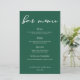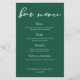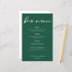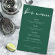 This solid emerald green wedding bar menu sheet features classic white script for a couple getting married in a forest or other nature venue. Celebrate your love with this tranquil colour and coordinate with our matching minimalist typography collection.