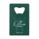 This design features personalised groomsman's name in white modern handwriting script font style and monogram in light emerald green modern sans serif font style as background, with wedding details in white modern sans serif font style, on emerald green background.