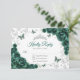 Emerald green silver floral Quinceanera RSVP reply card. Features, script font, silver butterflies, watercolor roses and tiara. Perfect for an elegant princess style glam celebration. Personalize with your own details.