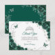 Emerald Green Silver Floral Quinceanera Thank You Card