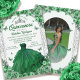 Introducing our exquisite "Emerald Green Silver Glitter Floral Quinceanera Invitation" - a perfect blend of elegance and whimsy, designed to set the stage for a memorable 15th birthday celebration. This invitation captures the essence of the cherished "mis quince 15 años" tradition, infusing it with a touch of modern sophistication.
